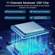 • 【EFFORTLESS NOISE CANCELLATION & PROTECTION】 Enjoy conversations in crowded places. Our advanced noise cancellation technology reduces distracting background sounds, while automatic in-ear protection safeguards your hearing from sudden loud noises, providing peace and clarity.