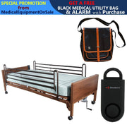Drive Delta Ultra Light Full Electric Hospital Bed with Full Rails and 80" Innerspring Mattress with Black Medical Utility Bag