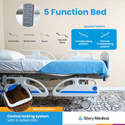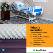 Point A (PAM-5) Premium 5-Function Full Electric Hospital Bed for Home Use, 5.9" Memory Mattress Made in USA, LINAK Motor, Central Locking, 6" Casters, Includes (2X) Bed Sheet and Battery Back-up