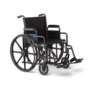 Medline Comfortable Folding Wheelchair with Swing-Back Desk-Length Arms and Swing-Away Footrests, 20”W x 16”D Seat
