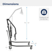 • Dimensions: The patient lift for home has to be assembled and has a base width of 42 inches and height ranging from 17.5-62 inches with a weight capacity of 450 lbs